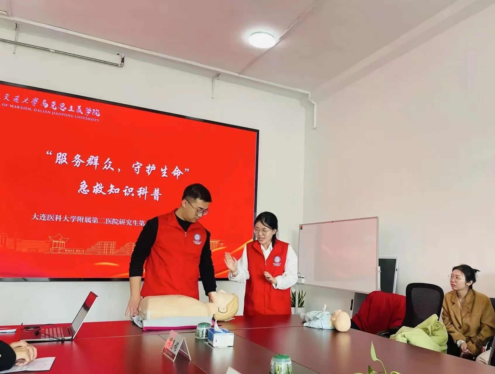 研究生党支部携手辽宁师范大学管理学院研究生第二党支部、大连医科大学附属第二医院研究生学生党支部,共同开展“红浪传薪火·医教绽芳华”主题党日活动。红色学习、支教故事、急救实操三大亮点,打破校墙壁垒,让党建活动既“有高度”又“接地气”!