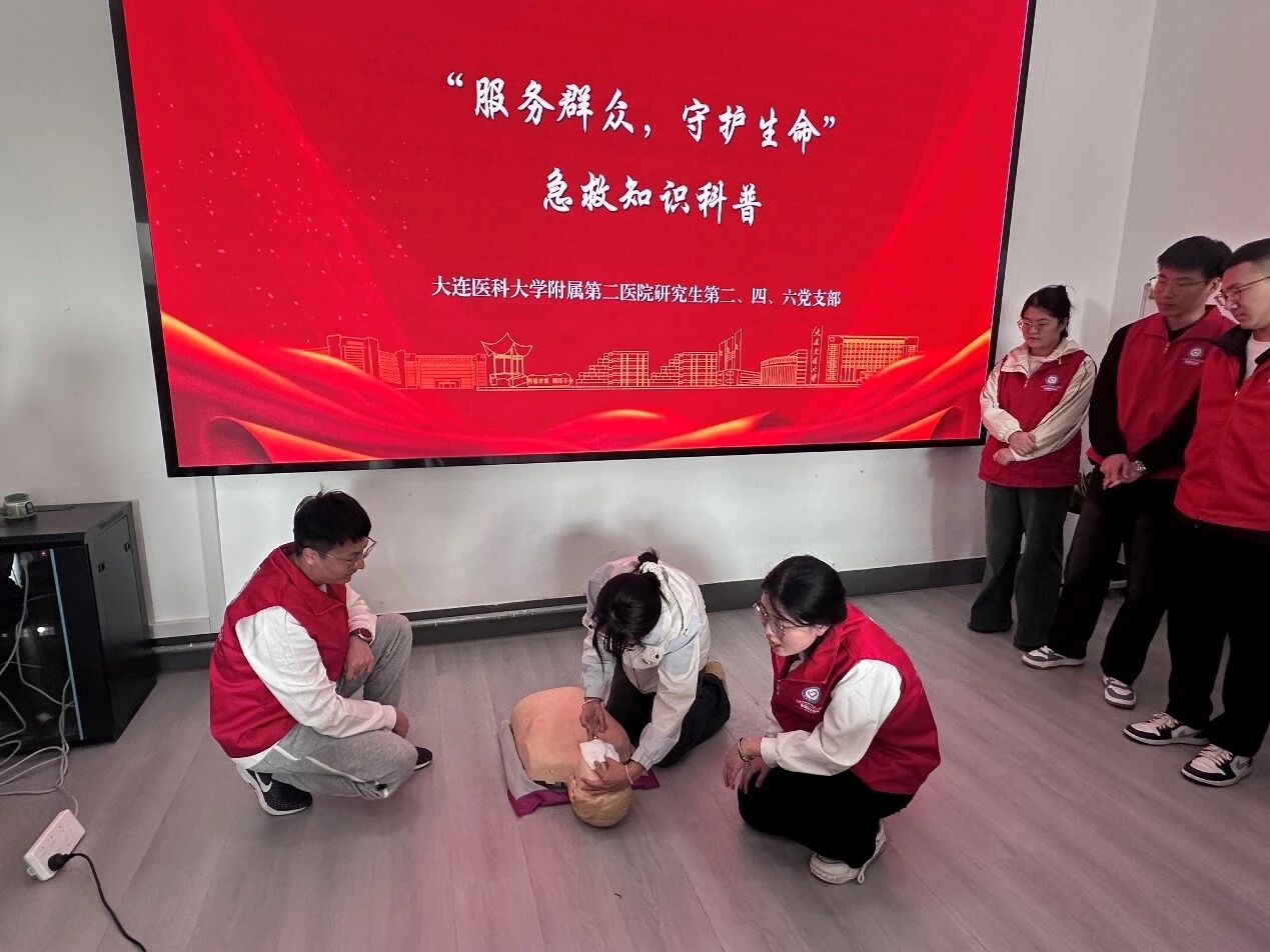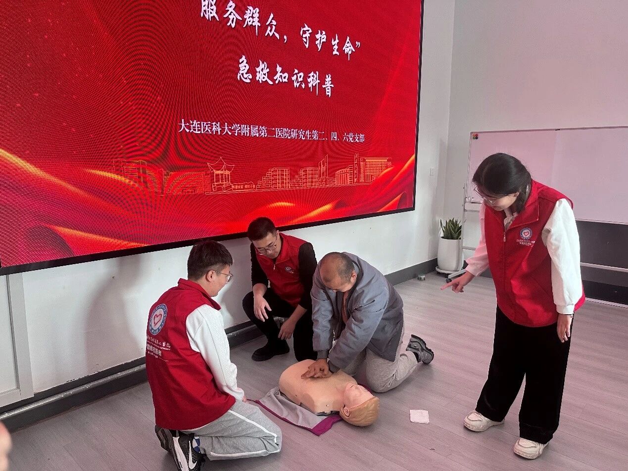 大连医科大学附属第二医院的医学生们教大家成为生命守护者,带来“急救知识科普”,现场演示心肺复苏、海姆立克急救法。从“旁观者”到“施救者”,只需一场培训的距离!现场青年党员纷纷表示:“这波技能解锁太实用”,也进一步理解了“党员担当”的分量。