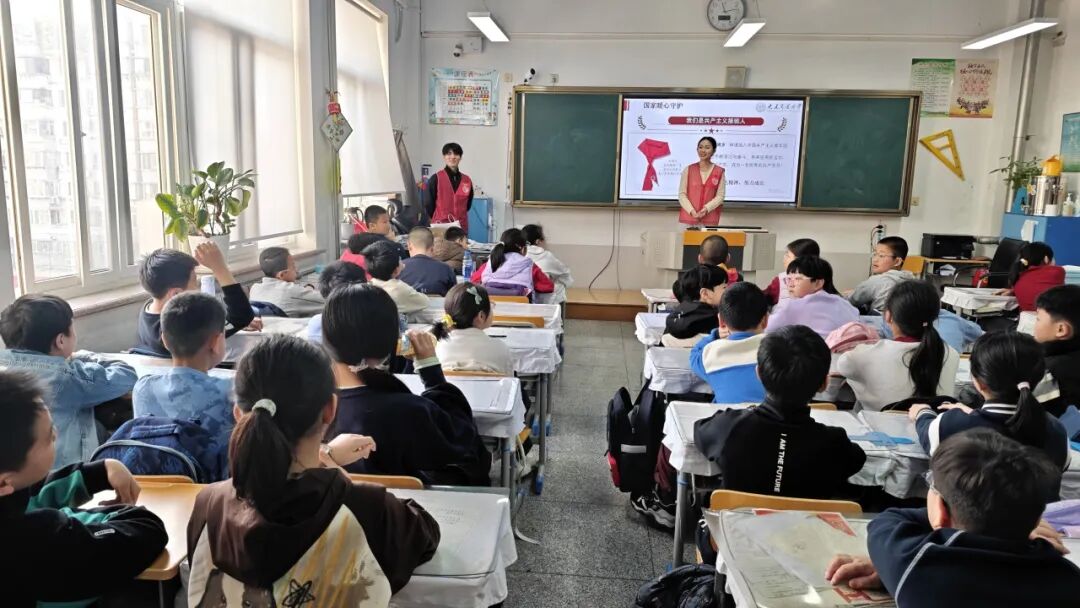 “红浪”研究生宣讲团走进大连市第七十九中学小学部,开展“童心向党 筑梦成长”主题红色宣讲活动,用贴近孩童的鲜活讲述、温情互动,把爱国教育与少年梦想紧密相连,在孩子们稚嫩的心田播撒下爱党爱国、向阳成长的种子。