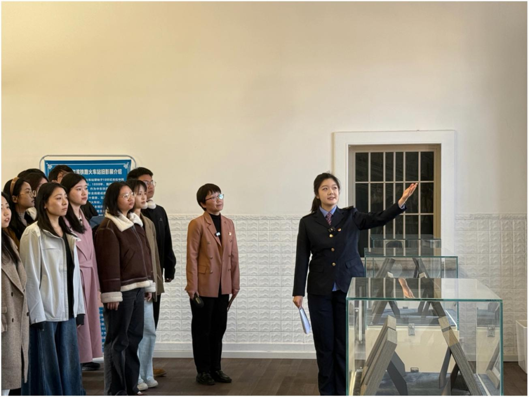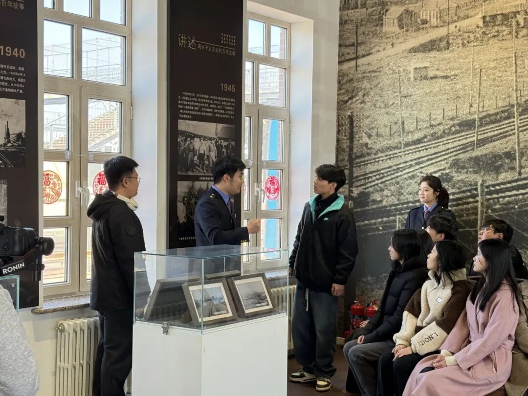 研学中,周水子站党支部书记李冰、职工战映辰、刘雨萌先后结合周水子站门前百年老树、展馆内珍贵展板与史料,为同学们讲述了19世纪末至20世纪上半叶帝国主义列强在中国东北的角力,讲述了红色基因为大连带来的抗争与奋斗。