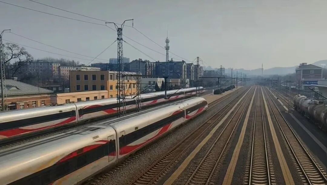 站在天桥上,上下行两趟高铁列车在站内会车的景象更是让同学们深切感受到当今中国科技的自立自强和祖国的繁荣强大。