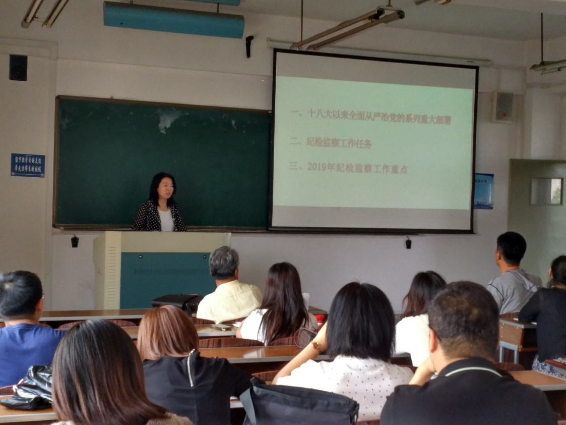 纪检委员马文萍老师为学院全体教师党员及研究生党员上廉政党课。