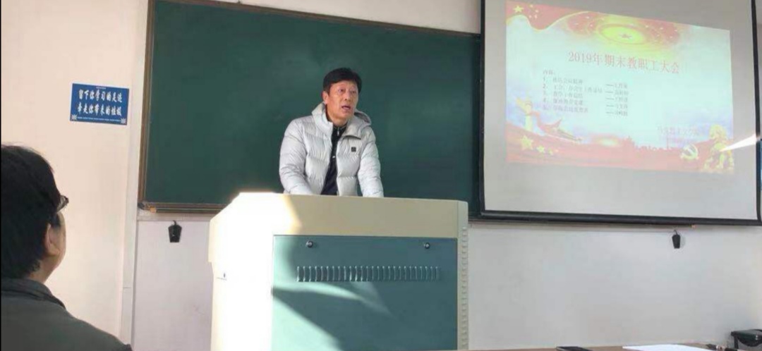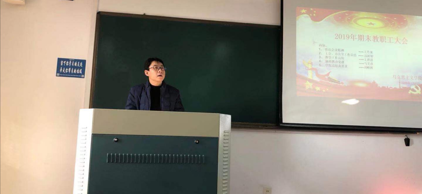 王丹来书记传达了学校安全、稳定和就业工作会议精神,肯定了本学期学院工作。在这一学期中,全体教职工齐心协力,辛勤工作,学院各条战线上的工作成绩捷报频传,硕果累累。高婷婷老师进行了工会、办公室工作总结。王世进副院长对学院教学工作做了概括总结。本学期以来,全院教师们不辞辛苦,认真备课和授课,承担并顺利完成相应教学任务。