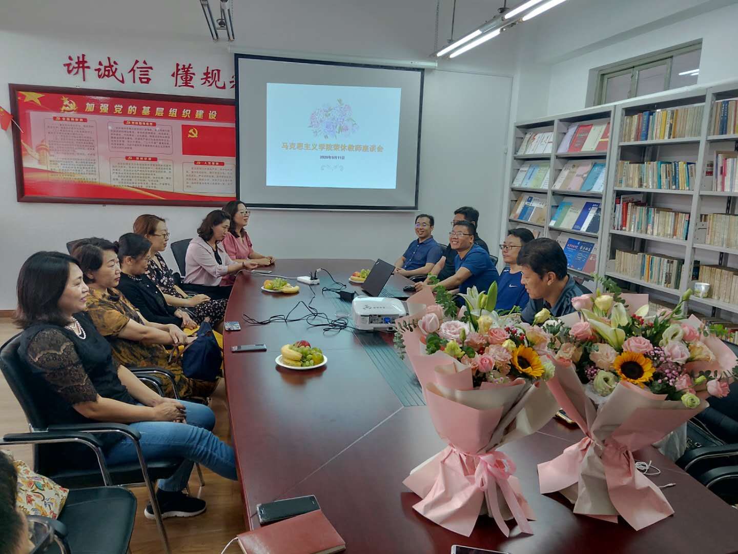为两位光荣退休教师举办荣休教师座谈会。