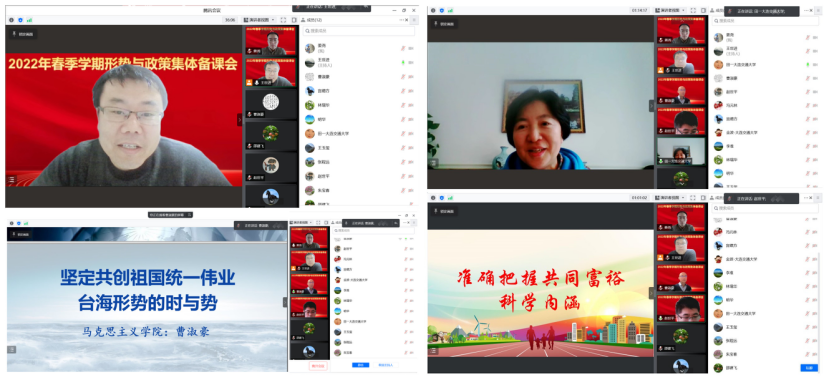 首先,“形势与政策”教研室主任姜尧围绕《高校“形势与政策”课教学要点(2022年上辑)》和关于组织《全省高校开展伟大抗疫精神融入思想政治理论课教学活动的通知》进行了解读和说明,强调授课的规范性要求。其次,曹淑豪、赵世平两位老师分别就“台海形势的时与势”和“准确把握共同富裕的科学内涵”,做了说课和教学展示。最后,参会教师对教学内容、教学安排和教学管理等方面进行了交流和研讨。大家纷纷表示,要坚决贯彻落实习近平总书记在学校思想政治理论课教师座谈会上的重要讲话精神,克服疫情影响,提高授课质量,尽职尽责上好“形势与政策”课。