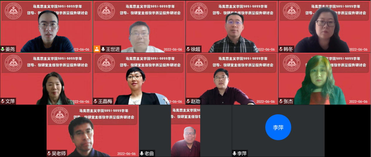 召开2021-2022学年督导、教研室主任教学质量提升研讨会。会议以线上形式进行,参加人员为学校督导、学院督导和教研室主任共11人,由副院长王世进主持。