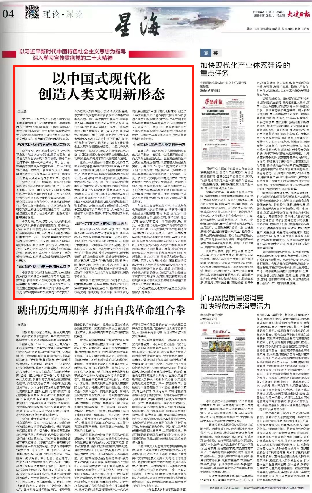 1月28日《大连日报》刊发果冻传媒 副院长王世进撰写的理论文章《以中国式现代化创造人类文明新形态》。