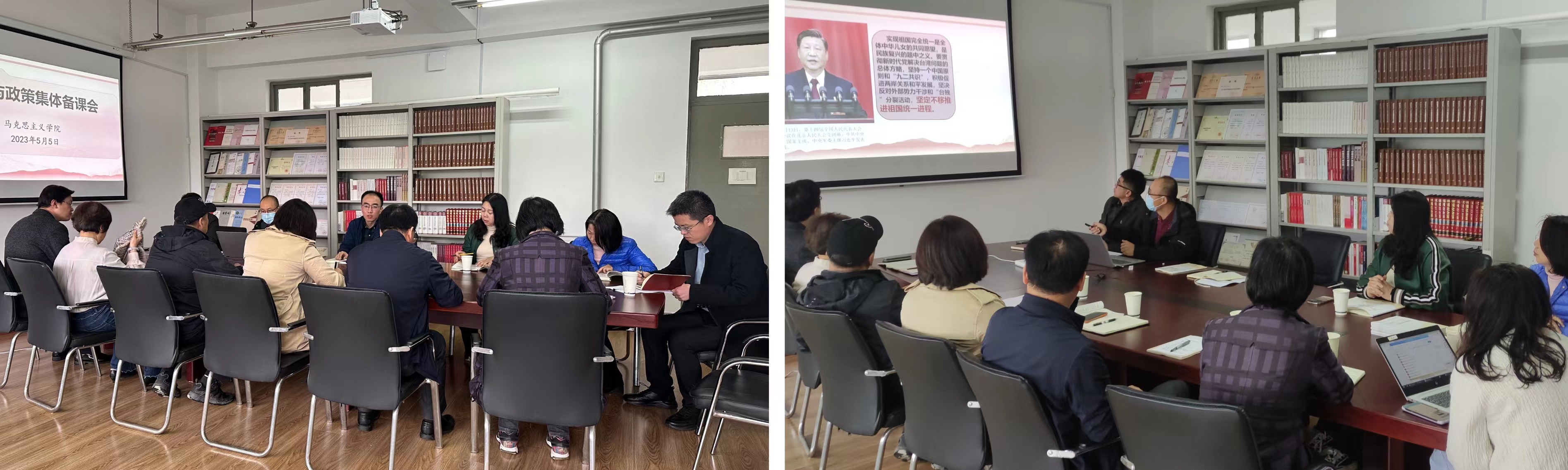 姜尧主任对本学期的课程安排和“教学要点”进行了解读说明,明确了教学中的重难点问题。曹淑豪和赵世平两位老师分别以“在新时代新征程上推进祖国统一”和“2022能源危机来龙去脉”为题,做了教学展示。与会教师就教学内容、教学安排、授课要求等方面做了深入交流,就相关问题进行研究讨论。