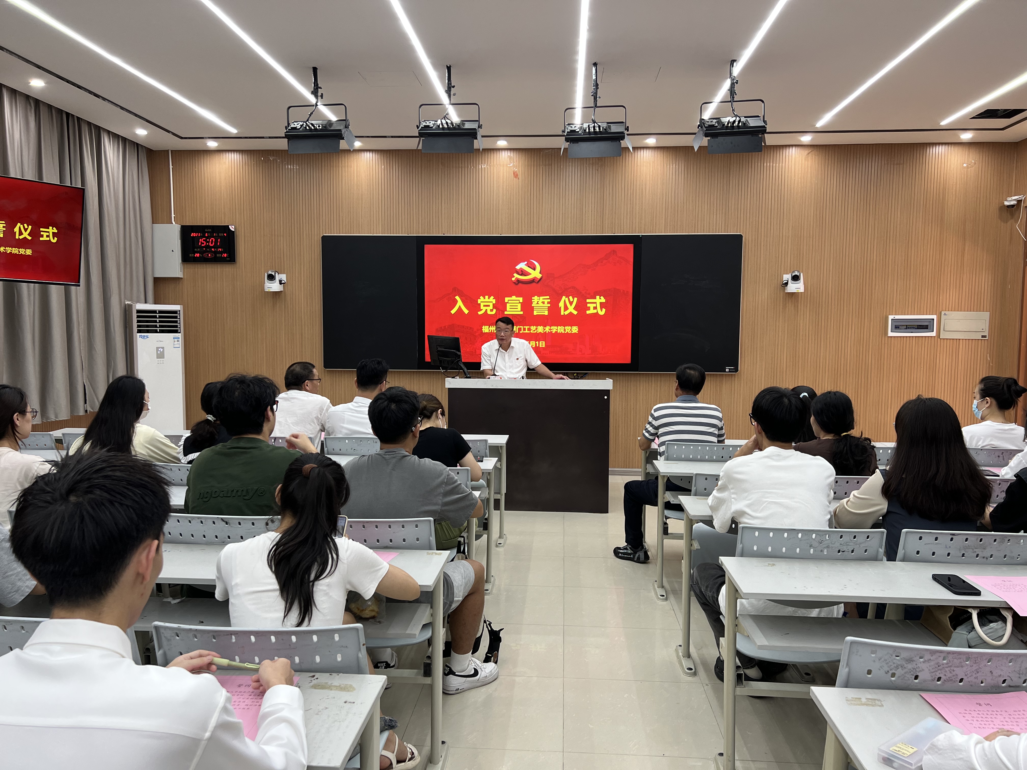 2023年6月1日下午,厦门工艺美术学院党委在公教2#208举行了庄严而隆重的入党宣誓仪式。学院党委李礼建书记、林金强副书记,学院党委委员、团委书记陈振兴、学院党委组织办主任林瑞来、各系辅导员以及我院新发展的党员同志参加了宣誓仪式。宣誓仪式由学院党委林金强副书记主持。