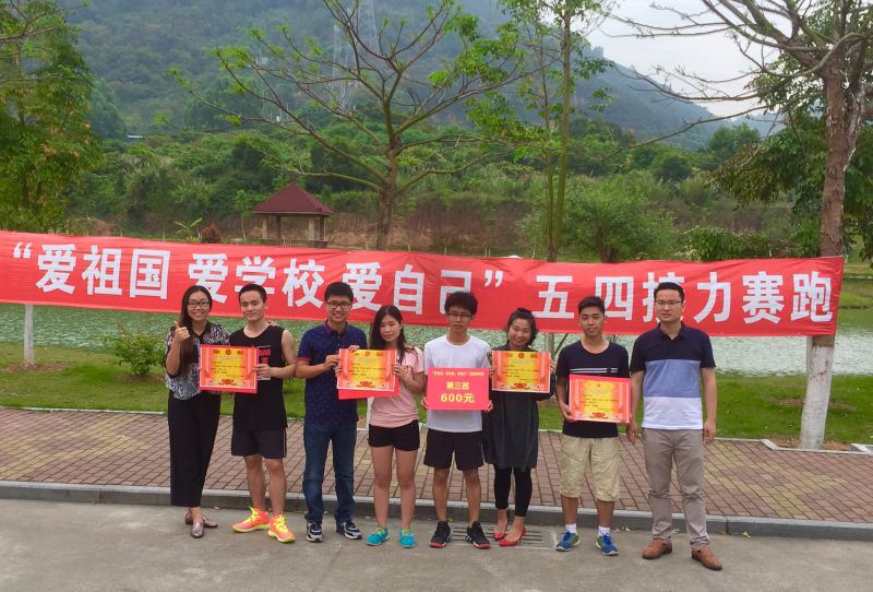 5月4日下午,由院团委主办,院学生会体育部承办的“爱祖国、爱学校、爱自己”五四环校接力赛圆满举行。来自非毕业班的9个代表队参加了比赛,经过激烈的角逐,最后2013级丙部代表队摘得桂冠,2015级丙部代表队和2014级丙部代表队分别获得亚军和季军,比赛结束后,院团委书记陈振兴老师为获得前四名的队伍颁奖。