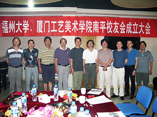 2012年7月30日于南平市群众艺术馆会议室召开校友座谈会,学院代表:林志强、佘国富、张明、程郑毅等五人。会议换届选出新一届南平地区校友会机构成员: