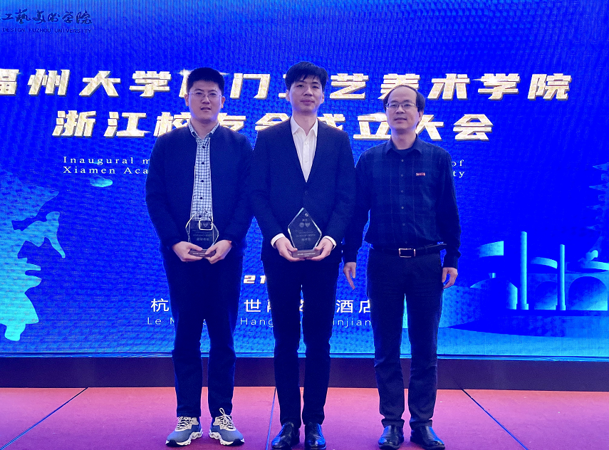 会议中学院浙江校友会代表易敏哲做了发言,学院广东校友会监事长林金舜校友介绍广东校友会情况,期待两地校友会今后加强沟通交流。会议最后,福州大学厦门工艺美术学院林旭副书记、福州大学浙江校友会陈一宁会长、福州大学厦门工艺美术学院浙江校友会徐默会长、福州大学厦门工艺美术学院院办校友办郑青主任、福州大学浙江校友会秘书长陈浩然共同为福州大学厦门工艺美术学院浙江校友会成立揭牌,福州大学厦门工艺美术学院浙江校友会正式成立。