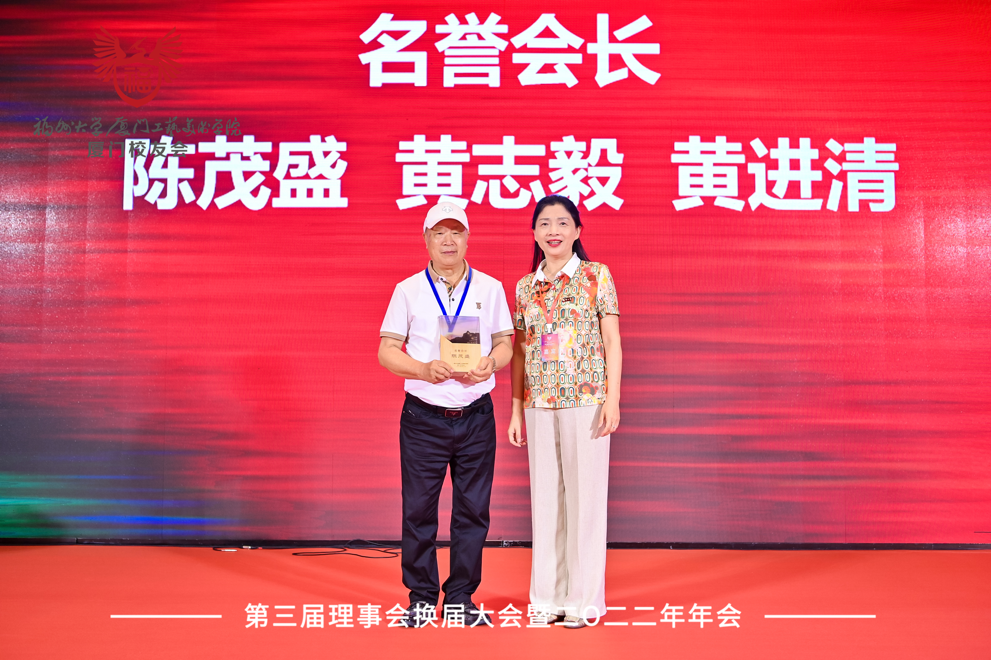 福州大学校友总会会长程玉敏老师为名誉会长陈茂盛校友颁牌