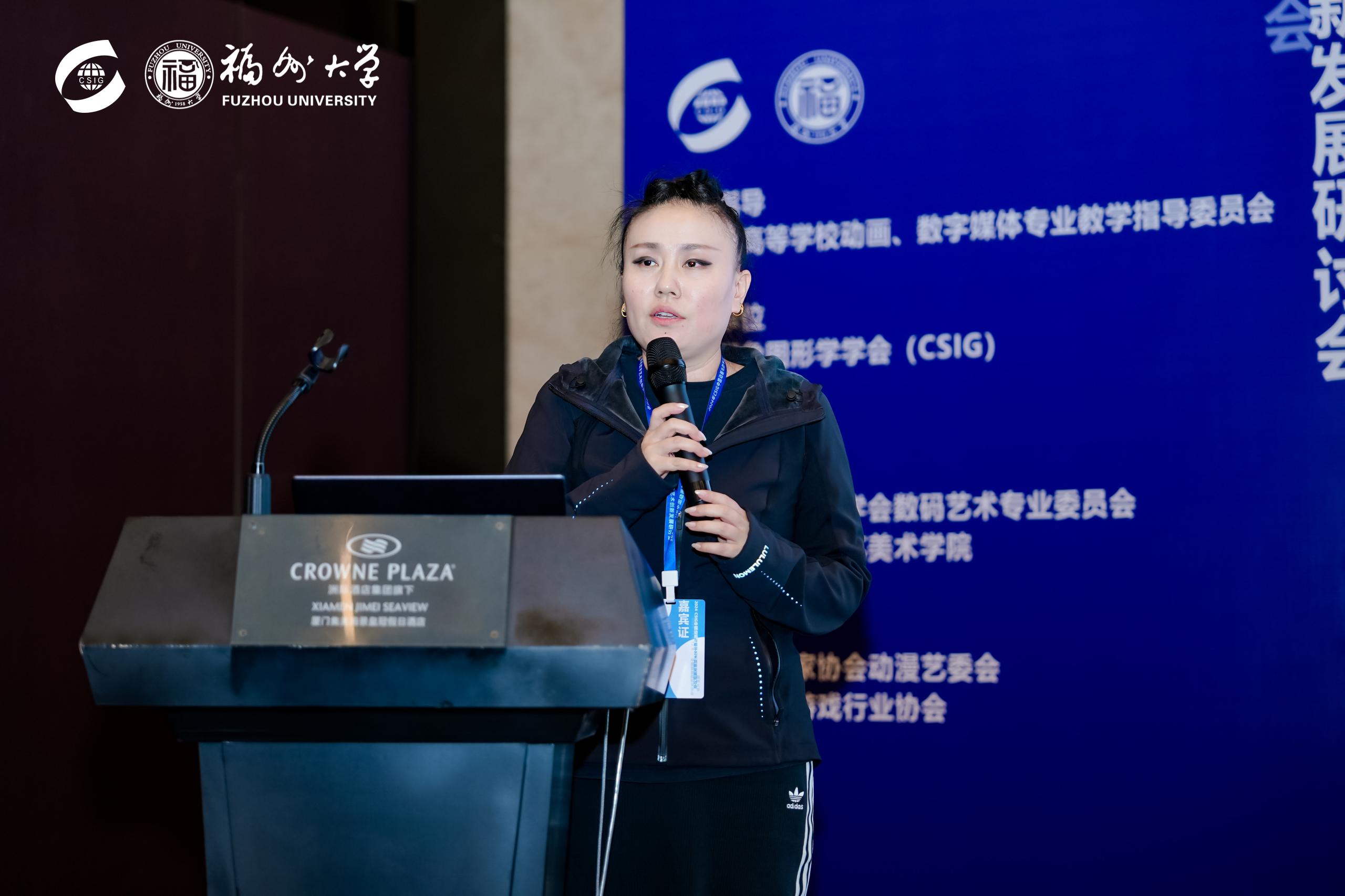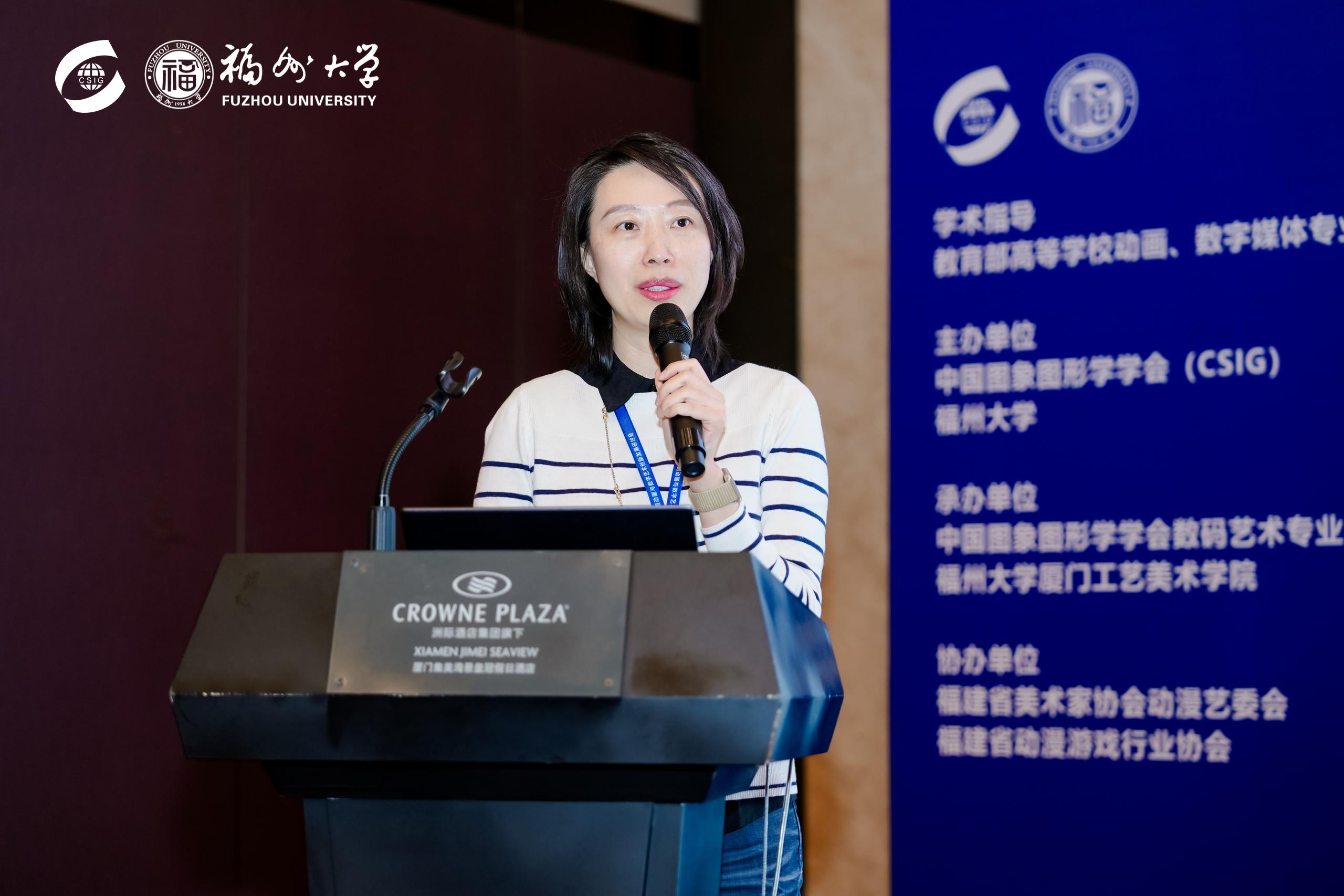 天津美术学院影视与传媒学院副院长、中国图象图形学学会数码艺术专委会副主任余春娜教授发表主旨演讲