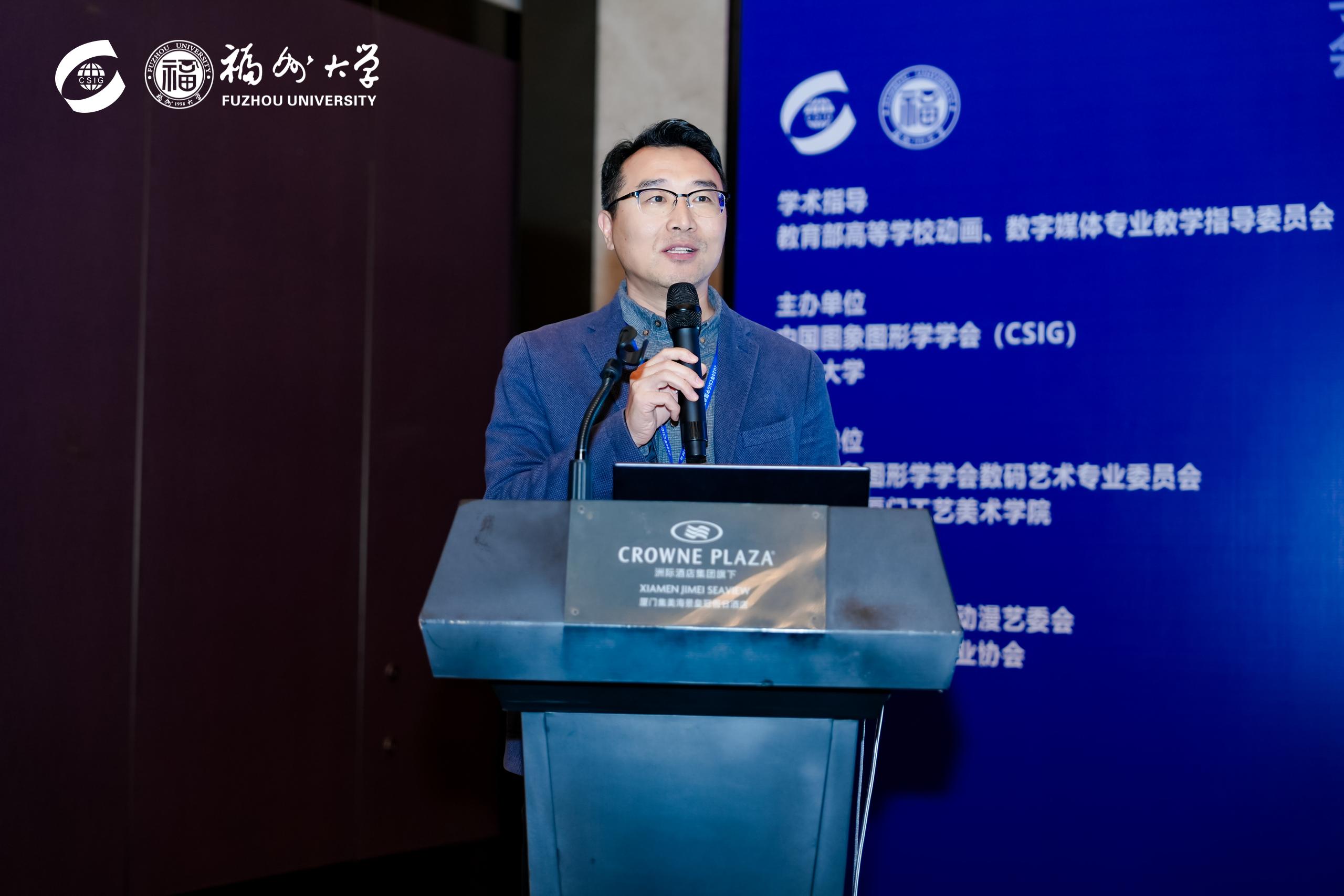 中国传媒大学动画与数字艺术学院副院长、中国图象图形学学会数码艺术专委会秘书长陈京炜教授发表主旨演讲