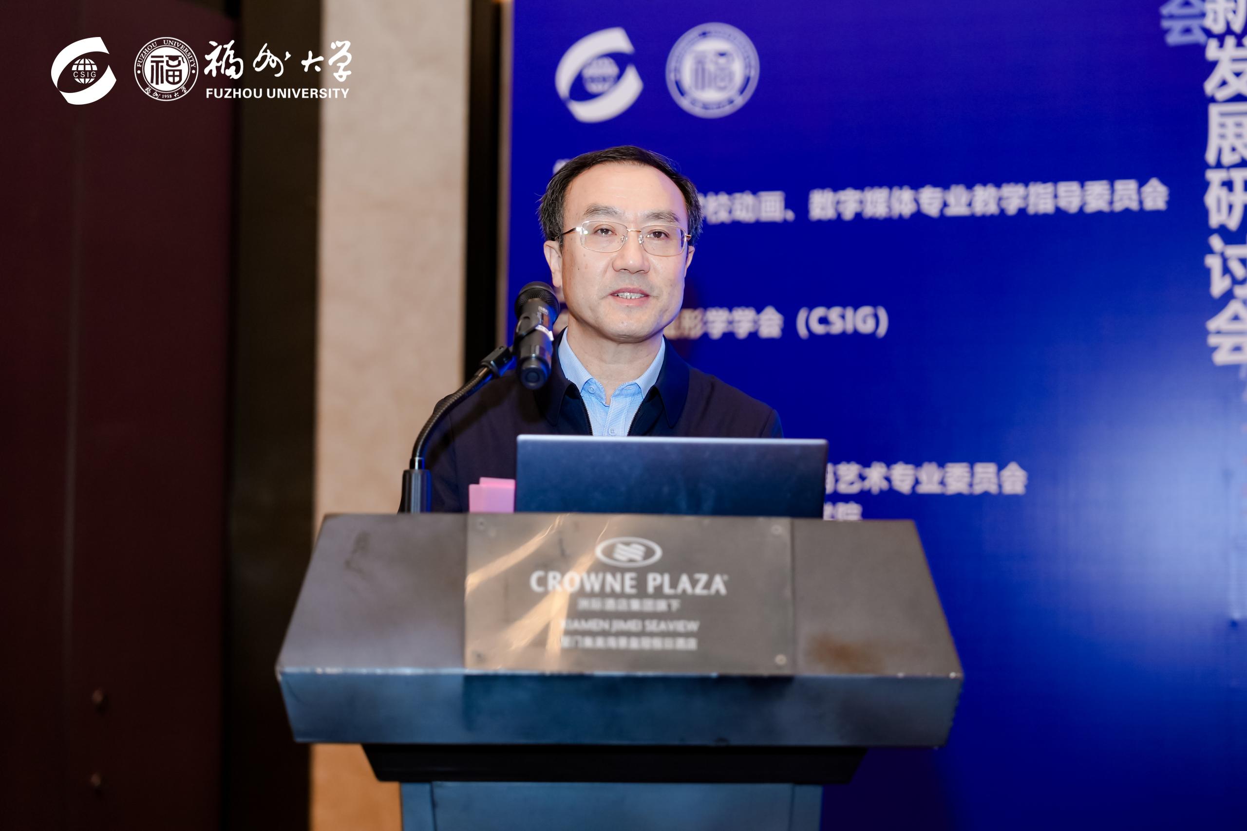 教育部高等学校动画、数字媒体专业教学指导委员会委员、北京林业大学信息学院淮永建教授发表主旨演讲