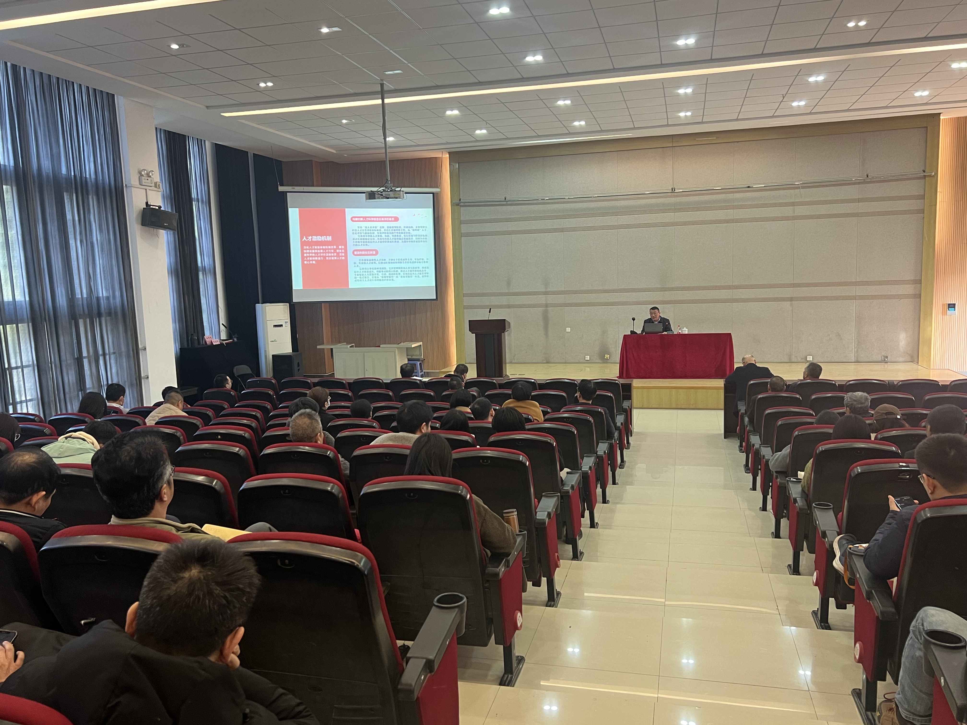 学院党委林金强书记为参会人员作题为《深入学习领会党的二十届三中全会精神 推动学院事业高质量发展》的专题报告。他从“党的二十届三中全会概况”、“深刻学习领会党的二十届三中全会的重要意义”、“党的二十届三中全会对教育工作、文艺创作提出的新要求”、“党的二十届三中全会对青年人才工作提出的新要求”、“凝心聚力,勇毅前行,推动学院事业高质量发展”五个方面对全会精神进行系统、生动的解读,使师生们对党的二十届三中全会精神的核心要义,主要精神、对教育、文艺创作及青年人才工作有了更深刻的理解和认识。同时结合学院实际,部署了学习贯彻党的二十届三中全会精神的落实措施,提出下一步学院的主要工作,鼓舞和激励全院师生员工凝心聚力,勇毅前行,全力推进学院事业高质量发展。