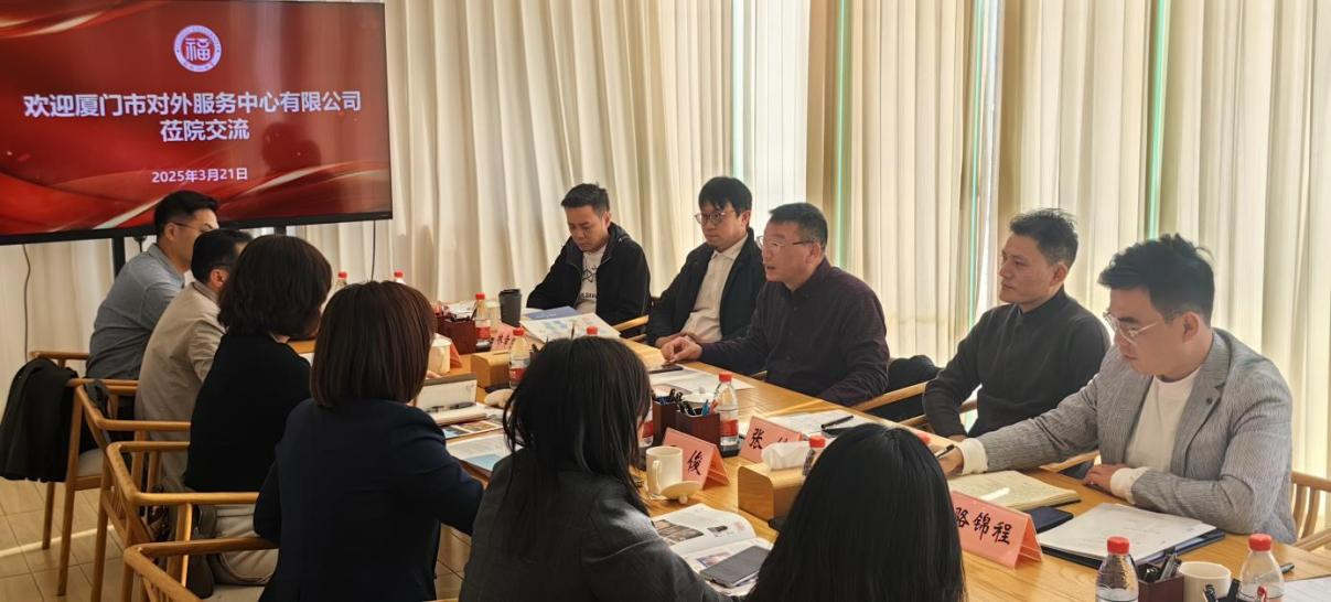 2025年3月21日,厦门市对外服务中心有限公司常务副总经理毛鲁珏、礼宾事务部总经理李德谦、展会活动部副总经理吕俊、国际业务部副总经理刘晓等一行六人来访我院,就校企合作相关事宜展开深入交流与探讨。