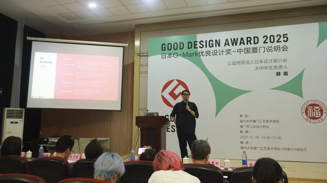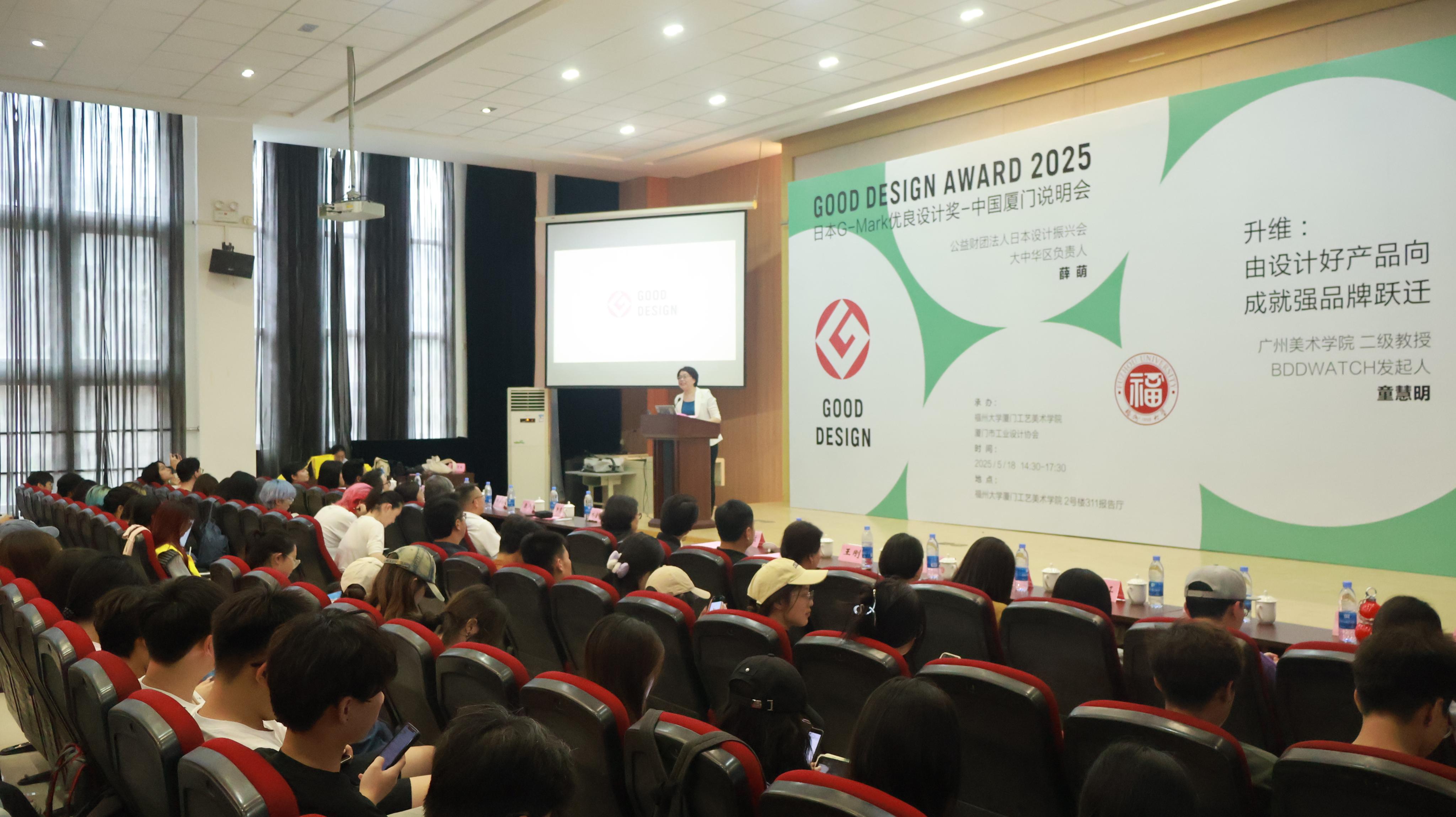 为深入推动设计教育与产业发展的深度融合,提升本土设计力与国际影响力,5月18日,由福州大学厦门工艺美术学院与厦门工业设计协会联合承办的2025日本G-Mark优良设计奖厦门说明会暨“好设计成就强品牌”主题讲座在福州大学厦门校区2-311报告厅成功举办。作为学院“设计驱动产业发展”战略的重要组成部分,本次活动旨在搭建国际设计交流平台,激励广大师生及设计从业者以国际视野审视设计,用创新设计赋能品牌成长,共同探索设计引领产业升级的新路径。