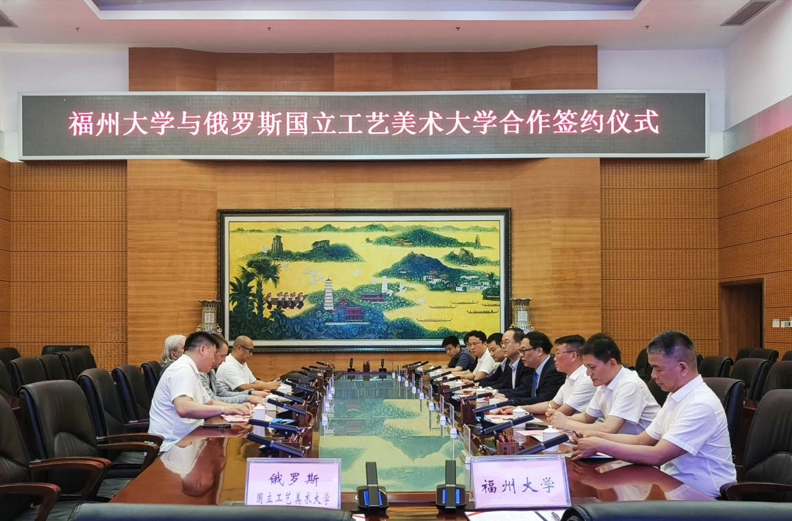 5月22日下午,俄罗斯国立工艺美术大学校长、俄罗斯教育部委员会委员库拉索福和俄罗斯美协副主席罗马申科一行来访福州大学。福州大学与俄罗斯国立工艺美术大学合作签约仪式在旗山校区行政南楼举行。对外合作与交流处于元隆处长、厦门工艺美术学院党委书记林金强、副院长张健教授、副院长廖万东等参会。