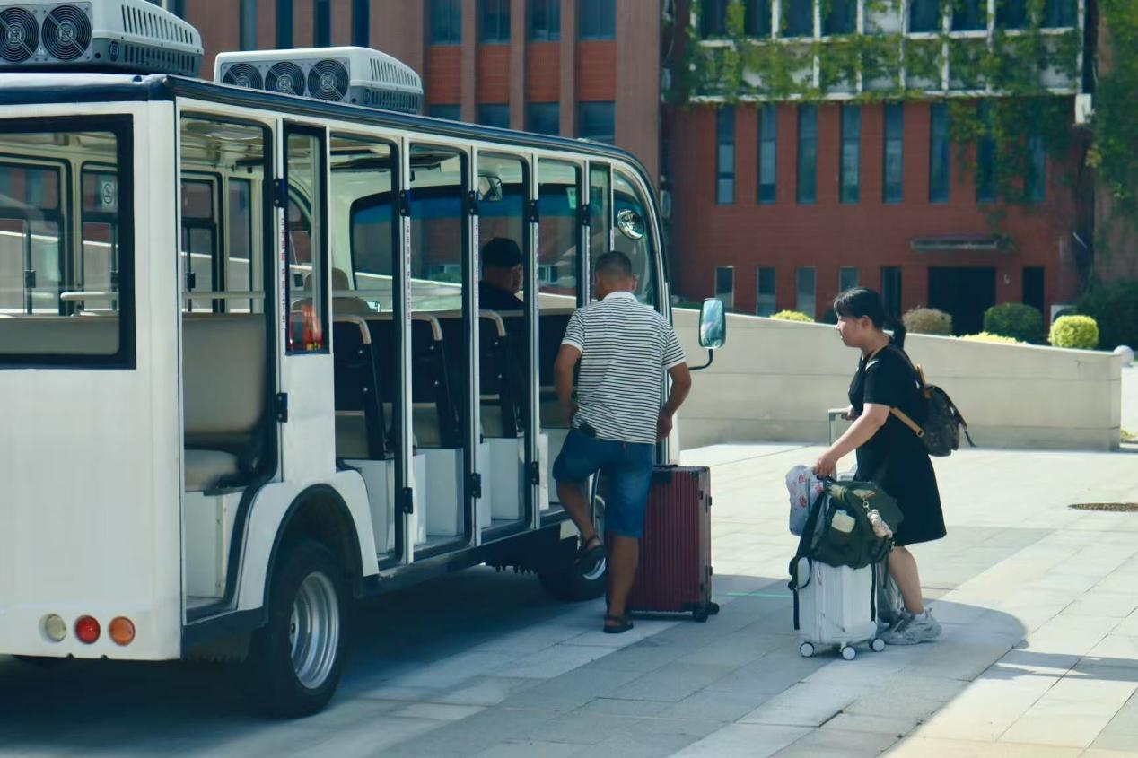 9月7日,随着满载本科生新生们的大巴车辆缓缓驶入,给校园更添朝气。年轻的身影拖着满载理想的行李箱穿梭在校园,身着统一服装的志愿者们热情相迎,他们熟练地接过行李,耐心地指引方向,“同学,我来帮你拿到宿舍吧!”一句句暖心的话语,成为新生们来到厦工艺的“第一份温暖”。