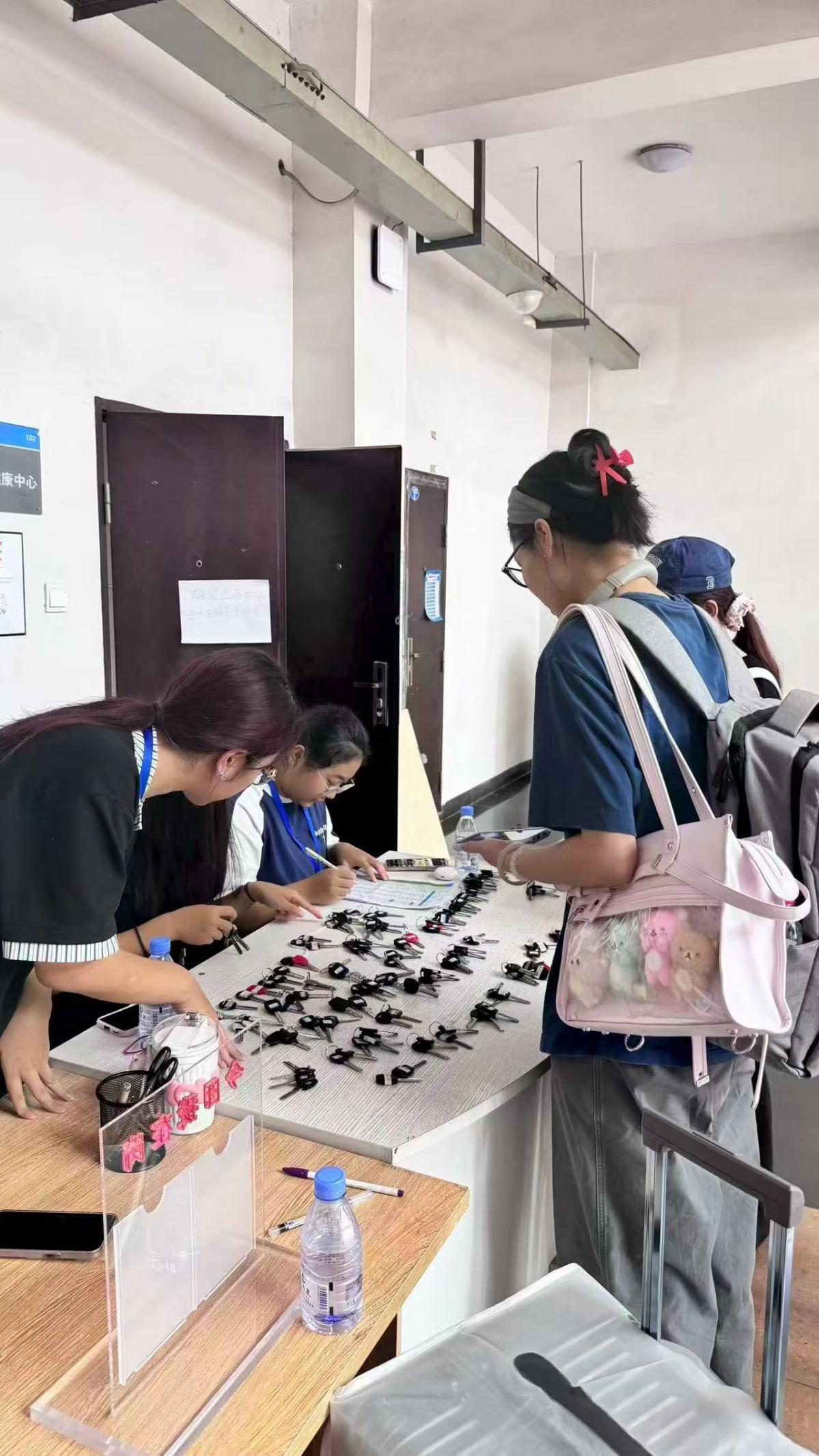迎新中的关怀,藏在每一个贴心环节里:学院专设的“绿色通道”,让家庭经济困难的新生能直接领取登记表记下需求,志愿者全程陪办、手把手指导服务;老师们深入关切,与学生及家长问候谈心,细致解答,用暖心话语驱散顾虑;志愿者也将细心准备的“爱心大礼包”亲手递到新生手中,沉甸甸的礼包里,装着学院最实在的牵挂。