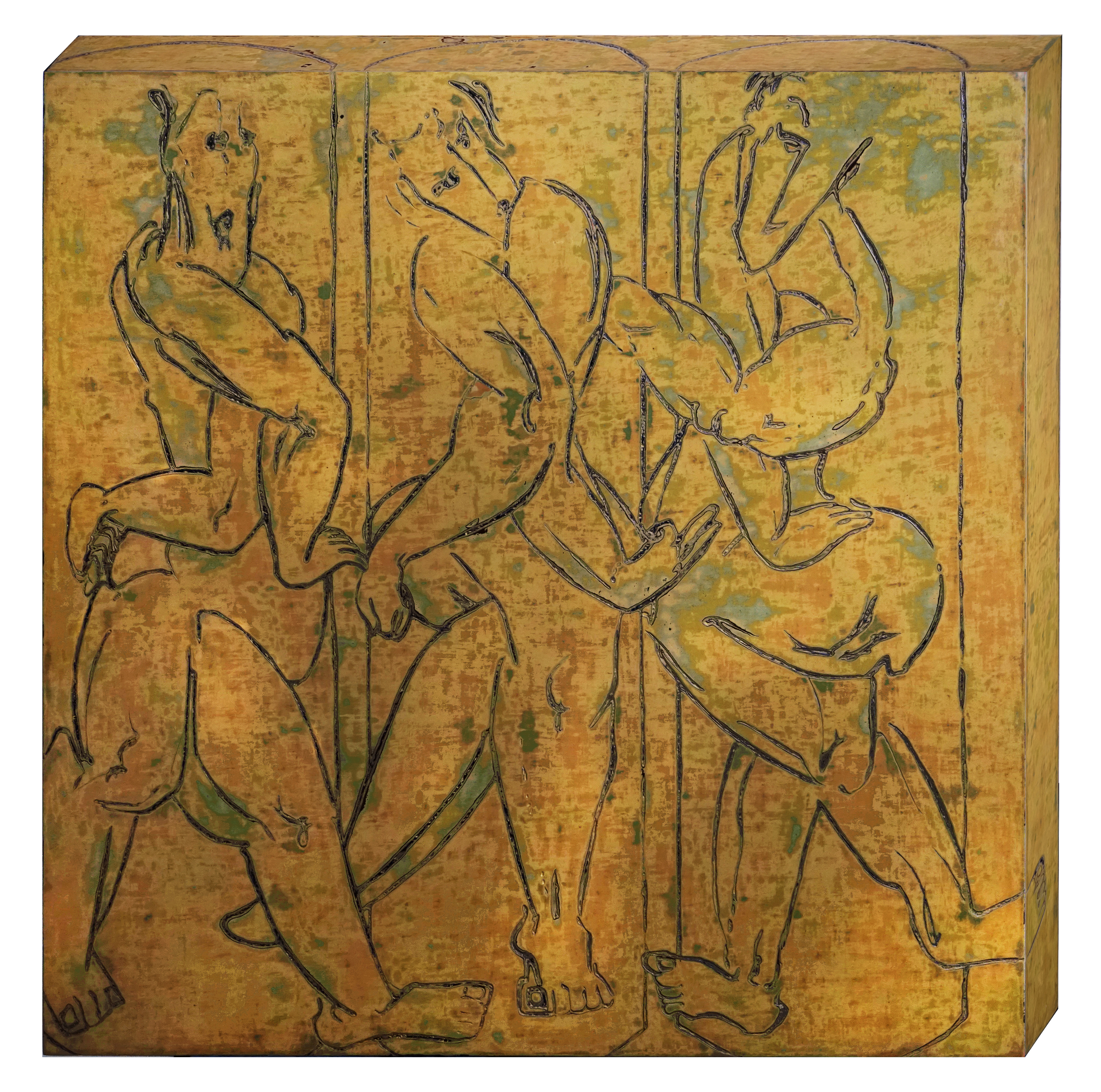 作品《三人行》 (第三届中国(宁波北仑)青年漆画大展 入会资格并收藏(2021 中国美术家协会)