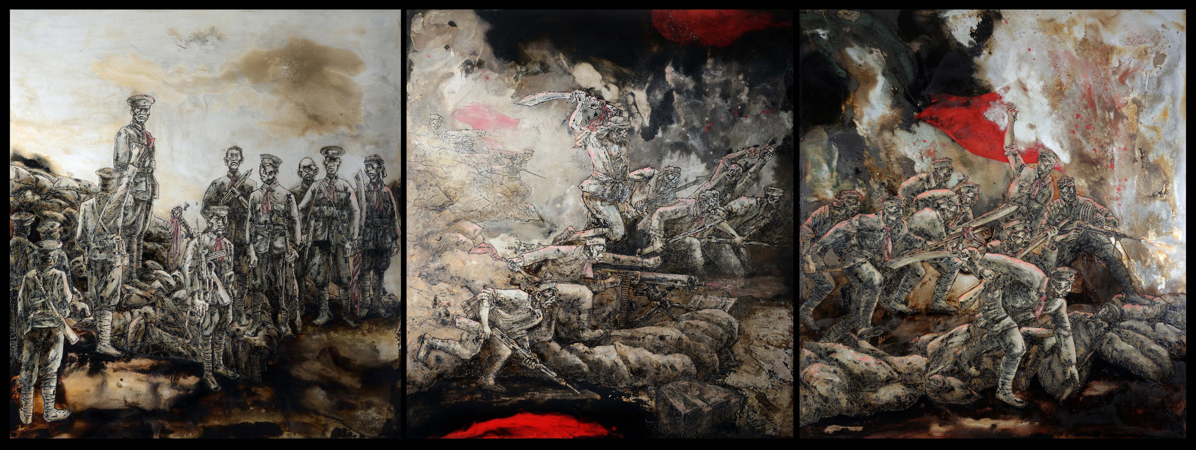 漆画《红色记忆1927》,获第十三届全国美展入选,国家艺术基金2019年度青年艺术创作人才资助项目,尺寸 540cmX200cm,,2019年