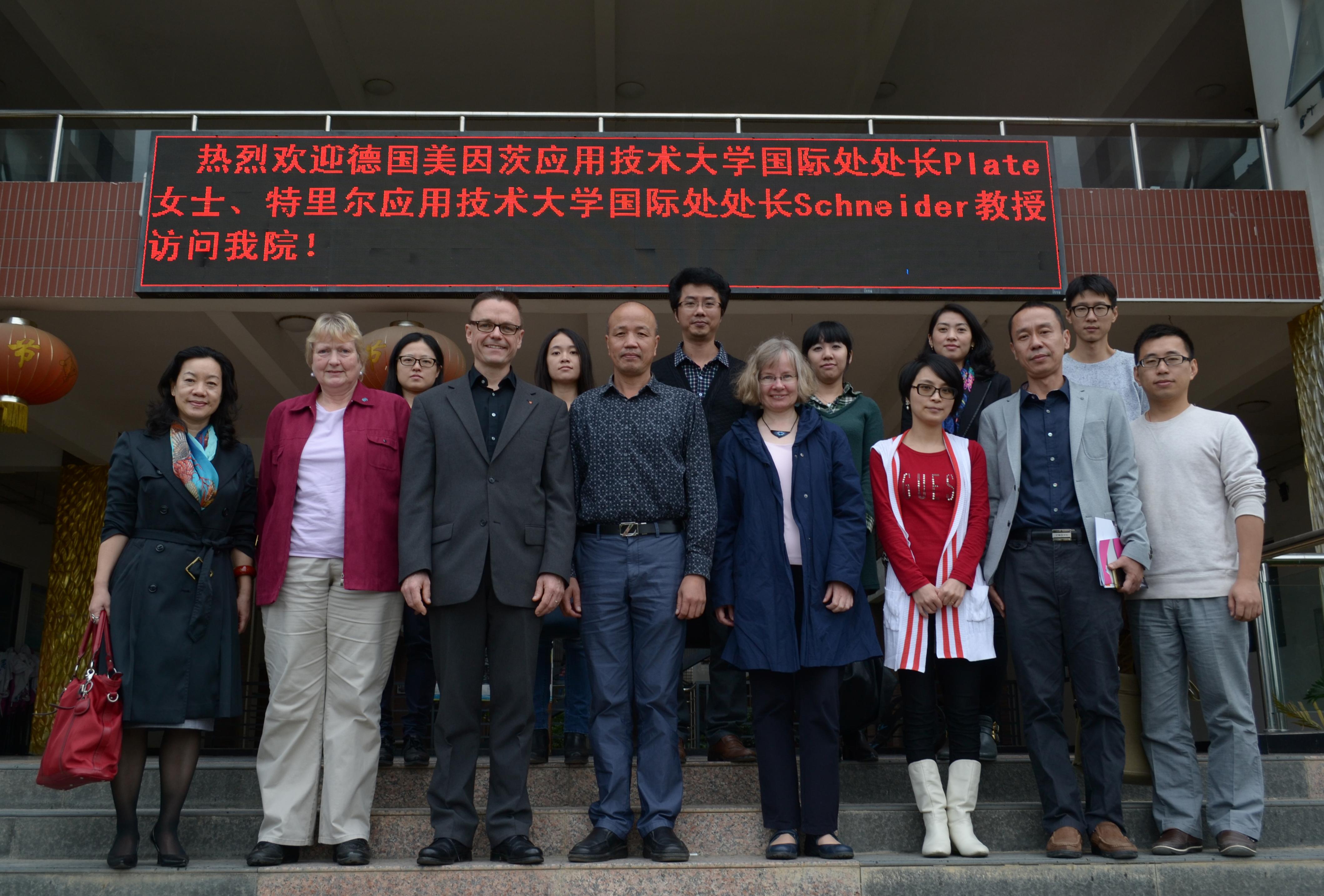 11月27日,德国美因茨应用技术大学国际处处长Plate女士、特里尔应用技术大学国际处处长Schneider教授来我院访问。佘国富副院长与德国来宾进行了座谈,双方介绍了各自学校概况和相关设计专业设置情况。我院数字媒体艺术系、视觉传达设计系、环境设计系、服装设计系老师向来宾介绍了各自专业发展历史、课程设置以及学生设计作品。德国来宾对我院的办学水平表示了赞许,希望今后进一步加强双方交流与合作。