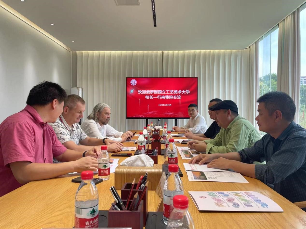 4月29日下午,厦门工艺美术学院院长刘玉龙教授在书瓦间会议室会见到访的俄罗斯国立工艺美术大学校长库拉索福、油画系主任罗马申科、中俄丝绸之路创新院院长郭晓宾一行。