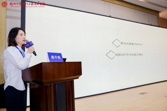 上午的主会议由院长助理刘柳教授担任学术主持,史论系张欣教授担任评议嘉宾,参加会议分享的分别是南京大学在读博士洪波,江南大学在读博士胡绮文,我院教师、巴黎第一大学博士周子悦,新加坡国立大学在读博士张鑫诚。各位博士的精彩分享及点评嘉宾的用心点评赢得了在场师生的阵阵掌声。