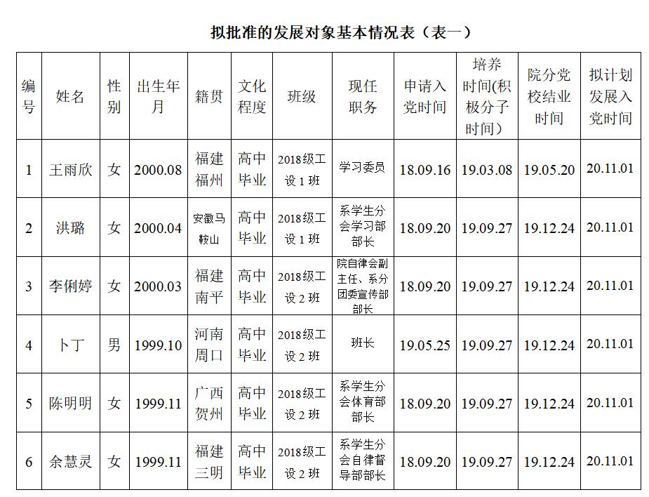 为了加强对发展党员工作的民主监督,确保发展新党员的质量,现将入党积极分子李俐婷等7位同志的有关情况进行公示(详见《拟批准的发展对象基本情况表》),公示期10月19日至10月25日止。有异议者,可向学院党委反映。