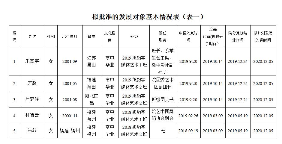 为了加强对发展党员工作的民主监督,确保发展新党员的质量,现将入党积极分子朱雯宇等5位同志的有关情况进行公示(详见《拟批准的发展对象基本情况表》),公示期10月19日至10月25日止。有异议者,可向学院党委反映。