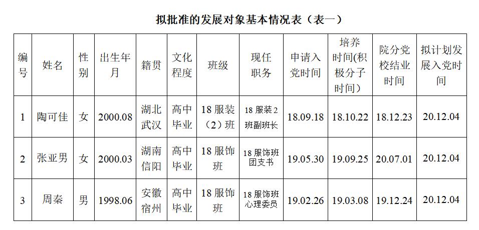 为了加强对发展党员工作的民主监督,确保发展新党员的质量,现将入党积极分子陶可佳等3位同志的有关情况进行公示(详见《拟批准的发展对象基本情况表》),公示期10月19日至10月25日止。有异议者,可向学院党委反映。