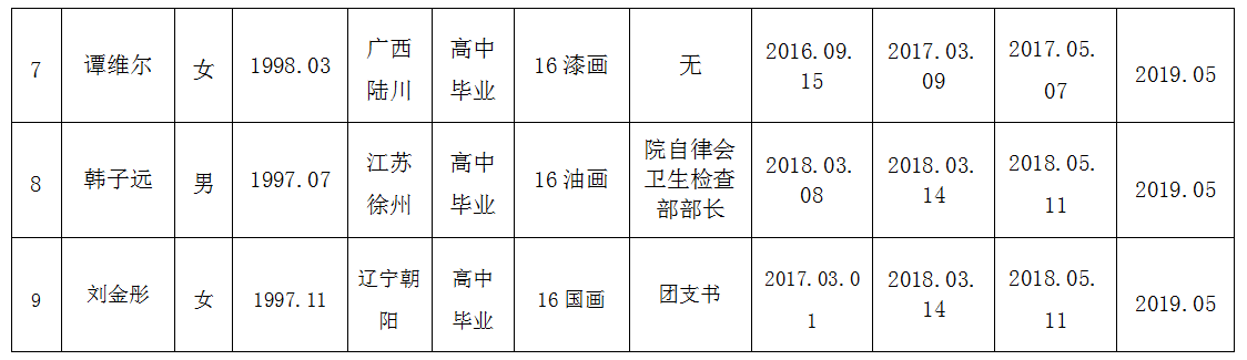 关于拟批准韩梦龙等9位同志为党的发展对象的公示书
