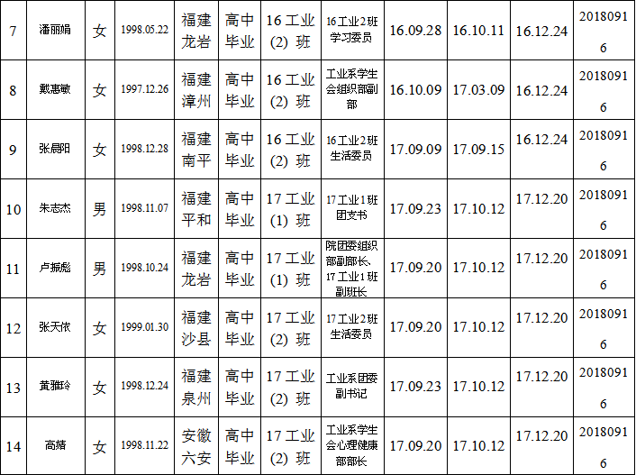 关于拟批准叶元强等15位同志为党的发展对象的公示书