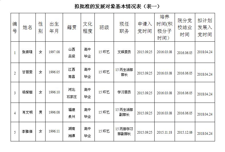 关于拟批准张崇璟等5位同志为党的发展对象的公示书