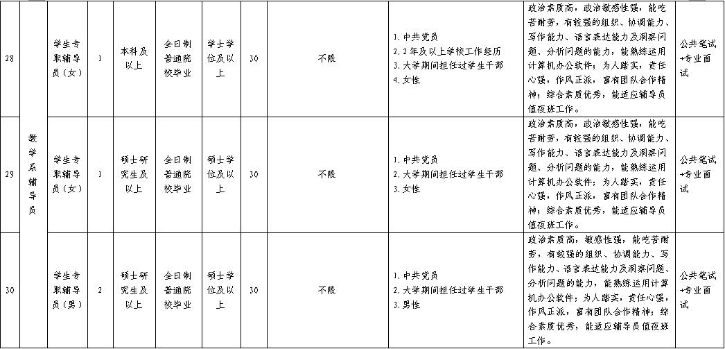 1.需公共笔试的岗位,公共笔试时间定于2017年5月20日(星期六)9:00—11:00。笔试具体时间、地点将在考生准考证上标明。面试时间、地点另行通知。需专业笔试的岗位,专业笔试时间拟定于2017年5月,具体时间请关注学院招聘公告。