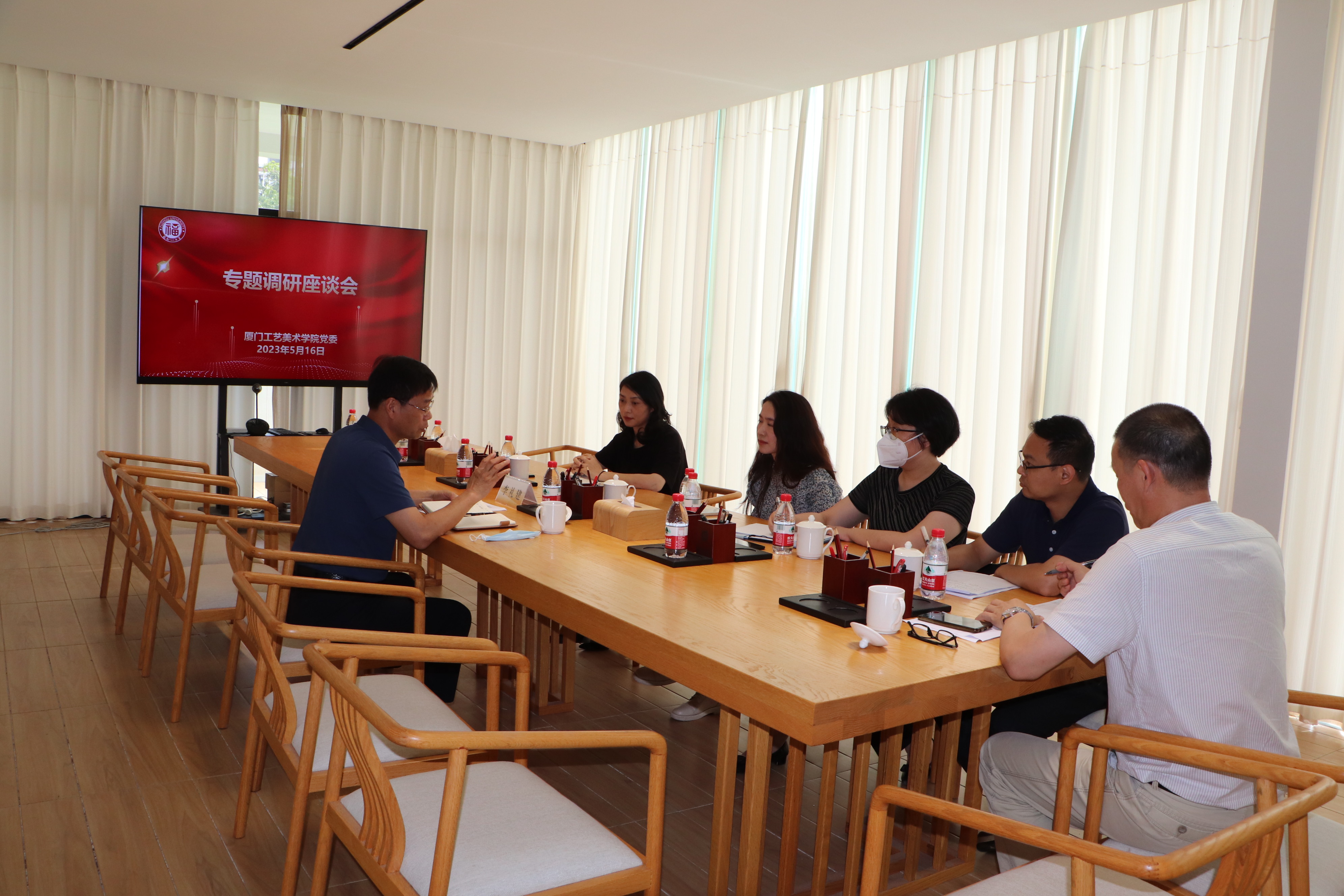 5月16日下午,厦门工艺美术学院党委李礼建书记在书瓦间组织召开专题调研座谈会,就如何加强与校本部其他学院进行交叉学科建设及党建与业务融合等进行专题座谈调研,学院环艺系、数媒系、工业系、产品系负责人及支部书记参加了调研座谈会。