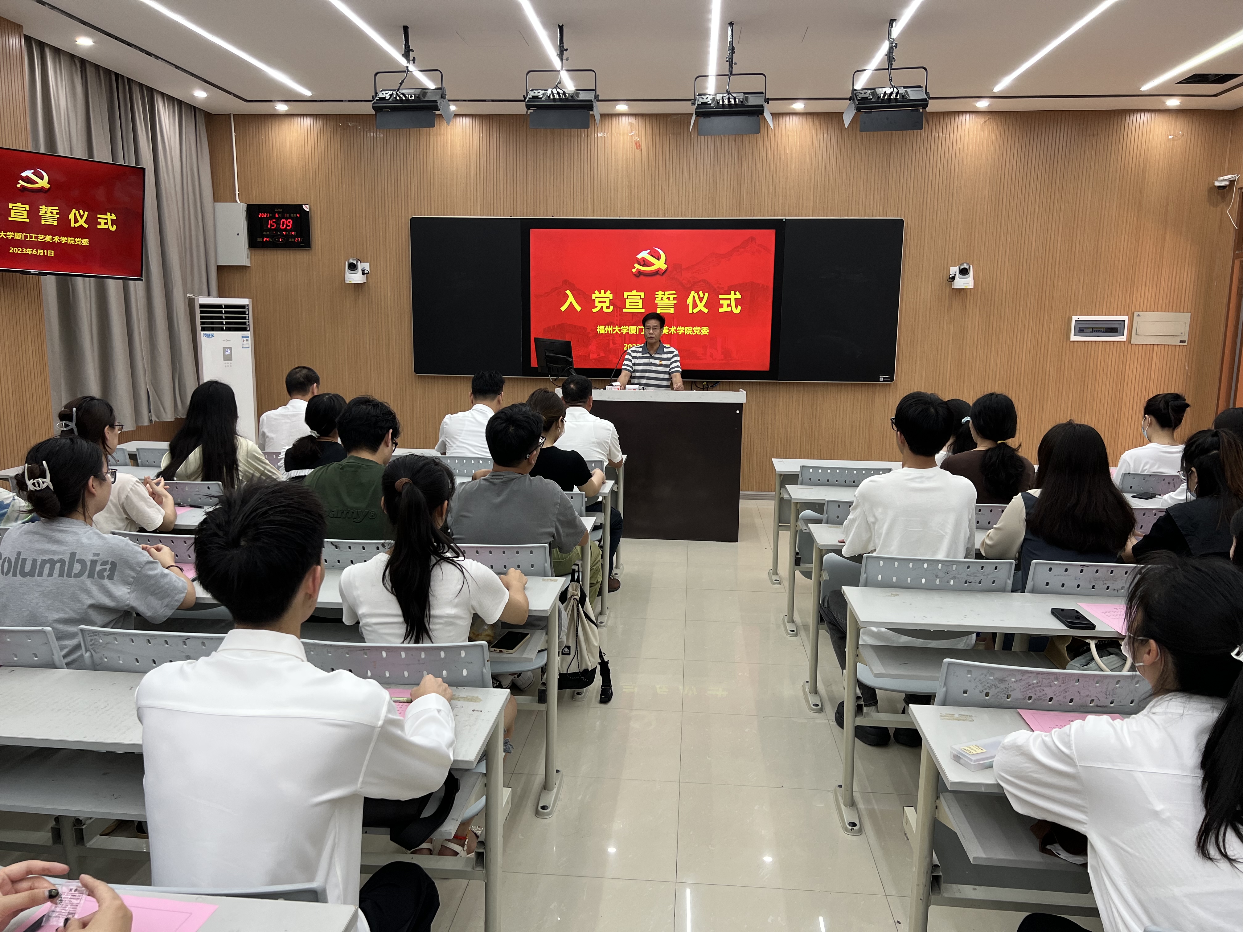 2023年6月1日下午,厦门工艺美术学院党委在公教2#208举行了庄严而隆重的入党宣誓仪式。学院党委李礼建书记、林金强副书记,学院党委委员、团委书记陈振兴、学院党委组织办主任林瑞来、各系辅导员以及我院新发展的党员同志参加了宣誓仪式。宣誓仪式由学院党委林金强副书记主持。