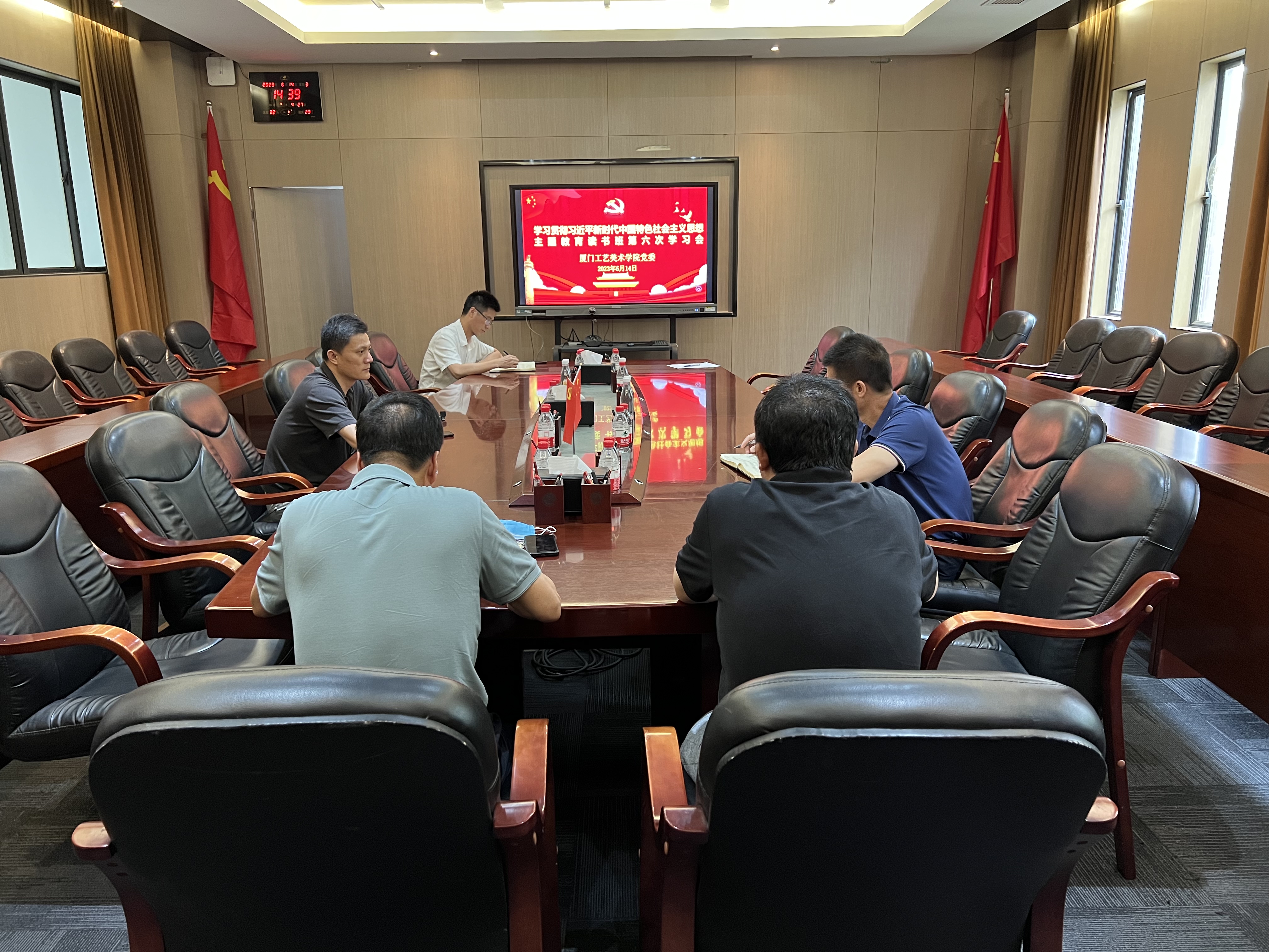 6月14日下午,厦门工艺美术学院党委读书班在2号楼107会议室举行第六次学习会,学院党委李礼建书记主持会议,学院党政班子、党委班子成员、理论学习中心组成员等参加会议。