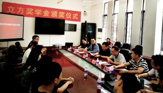 2017年6月22日上午,立方奖学金颁奖仪式在学院2号楼107会议室隆重举行。学院常务副院长佘国华教授、党委副书记郑顺利副教授、党委副书记林旭副研究员、党委委员、团委书记兼学生科科长陈振兴、厦门市立方艺品有限公司汤敏聪副总经理、戴茹萍经理及辅导员代表和获奖学生出席了颁奖仪式。