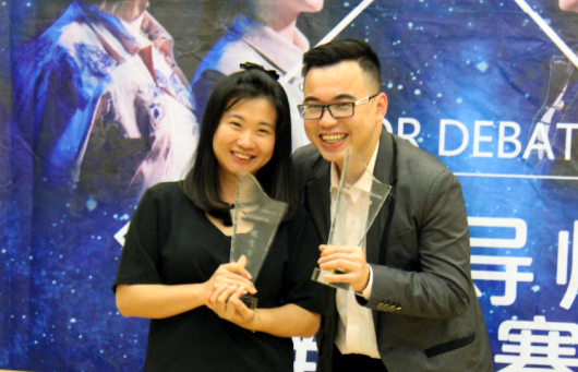 2015级工业1班孟飞同学以其轻松、诙谐的语言及稳健的现场表现荣获“最具人气选手”称号,2015级工业1班吴昆澄同学则以其出色的辩论表现荣获“最佳辩手”称号。