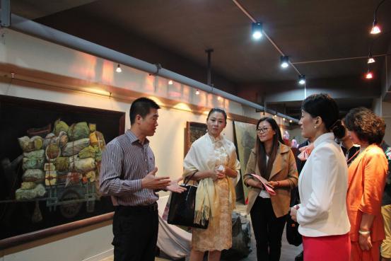 在林旭副书记的带领下,女企代表参观了我院漆画雕塑展厅。