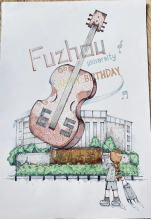 王仁月同学将福大校园场景立于书本之上,这是一所在书本知识的海洋里孕养的学校。书香将陪伴着校园内的莘莘学子成长,福大学生的校园生活将处处环绕着书香。徐亦宣同学用细致的速写手法表现了福大之美。映入眼帘的巨型吉他,象征如歌一般美好的大学生活,拉着行李箱的新生正在拍照记录美好大学生活的开始。王圆圆同学将福大美景映射入相胶卷,将一幅幅福大校园象征性的场景收纳其中,记录着丰富多彩的大学校园生活,这份青春的悸动将和胶卷记录的瞬间一同保留。福州大学不仅是一所教育人才的学校,更是一座充满艺术气息的美丽校园。这次比赛体现福州大学的浓厚文化氛围和同学们的热情,通过描绘福州大学的美丽,展示了艺术的无穷魅力。同时,也期待下次的活动,能让大家继续展现自己的才华和创意。
