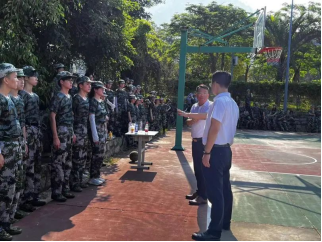 林金强副书记与承训部队官兵交流军事训练科目安排,了解学生军训情况;与参训学生亲切交谈,提醒他们要吃早餐、多喝水、合理安排作息时间,询问他们存在什么困难、需要增加哪些保障、有什么意见和建议,鼓励他们克服困难、刻苦训练、磨炼意志。