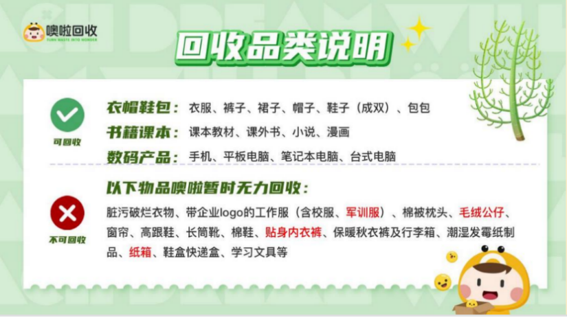 回收品类:衣帽鞋包、书籍课本