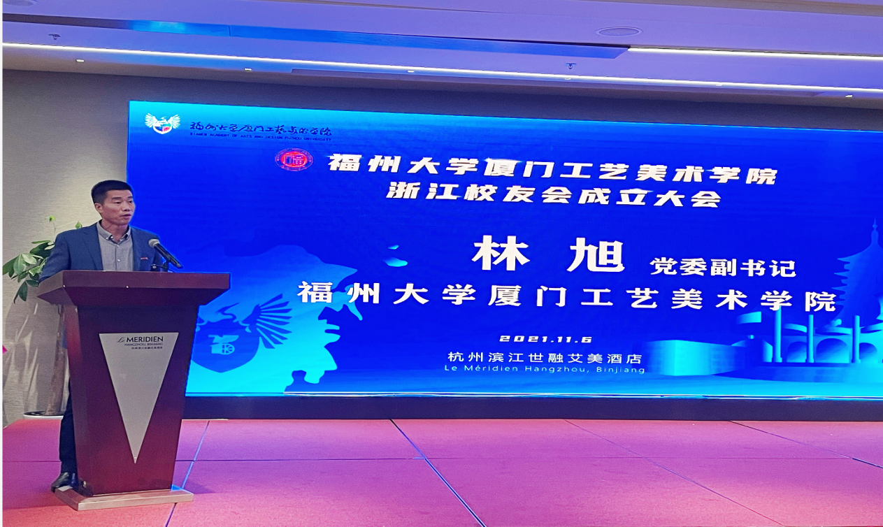 福州大学厦门工艺美术学院党委副书记林旭在会上致辞,对学院浙江校友会的成立表示热烈的祝贺,对美院校友对母校的支持表示衷心的感谢,对校友们利用所学知识、发挥自身特长,在各行各业做出了令人骄傲的业绩表示充分肯定。期待校友会发挥积极作用,架设母校与校友、校友与校友之间桥梁,共同建设美丽温馨的校友之家。