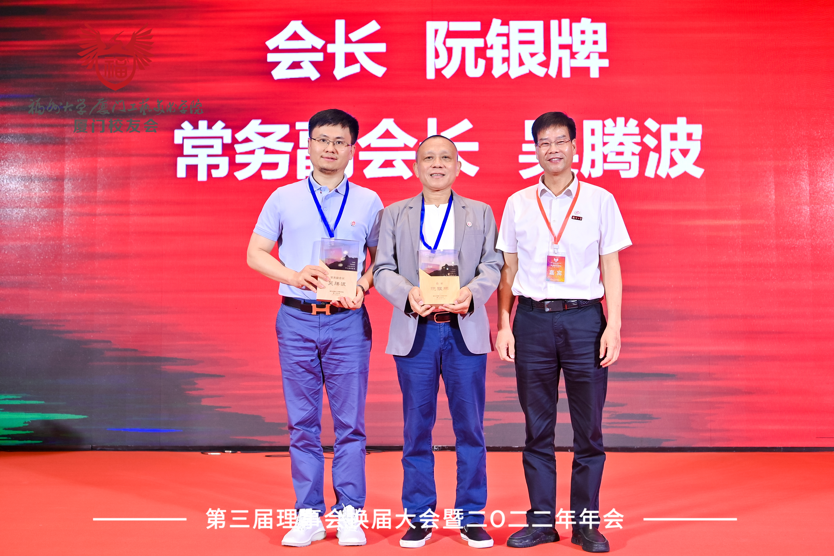 学院党委副书记、校友总会常务副会长林旭老师、学院副院长林金强老师、福州大学厦门校友会执行会长施少雄为理事们颁牌