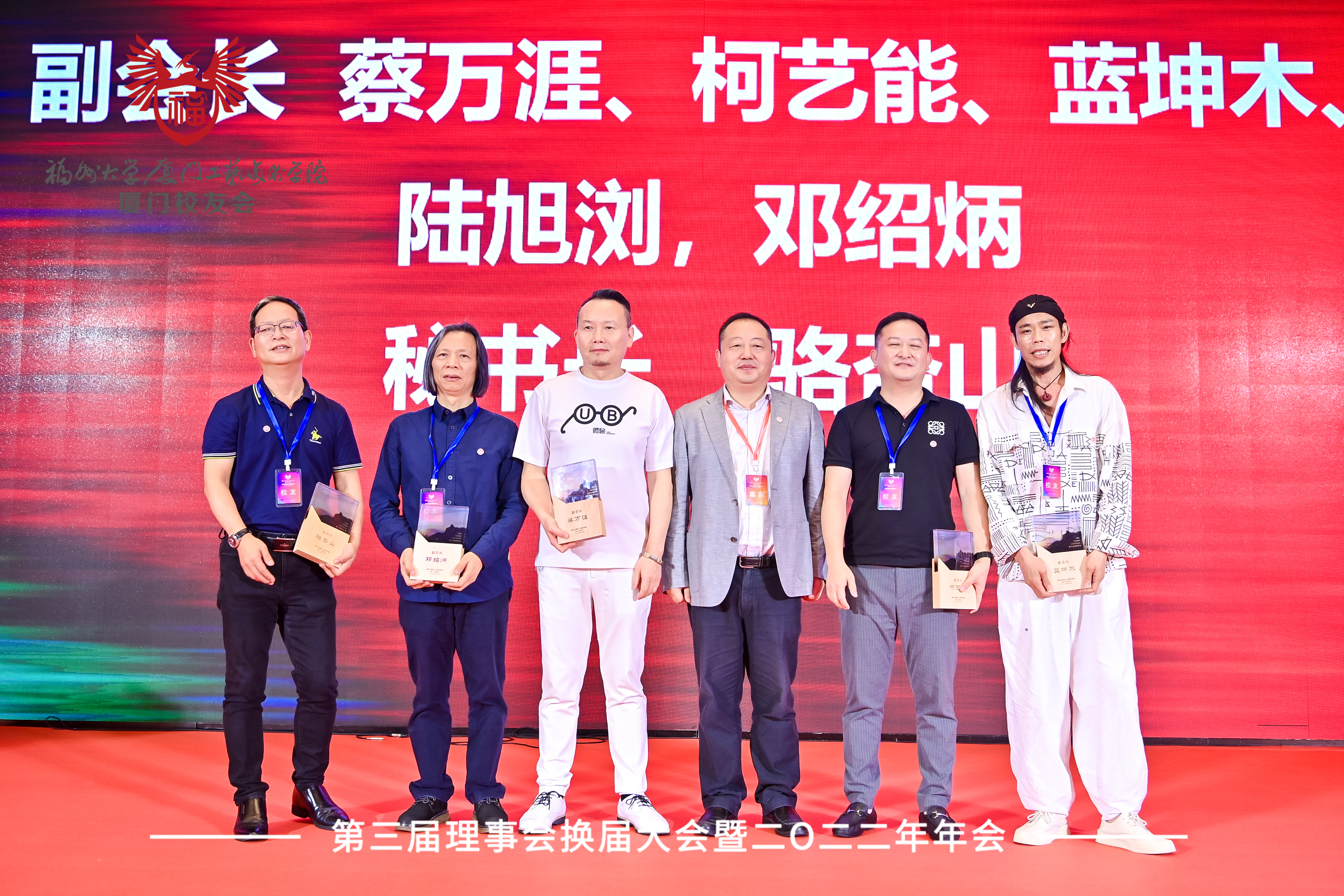 会议选举产生了福州大学厦门工艺美术学院厦门校友会第三届理事会成员。阮银牌校友当选为厦门工艺美术学院厦门校友会第三届理事会会长,吴腾波校友当选为常务副会长,蔡万涯、柯艺能、蓝坤木、陆旭浏、邓绍炳当选为副会长,骆杏山校友当选为秘书长。庄永强 、柯福水等70名校友当选为第三届理事会理事。理事会同时聘任陈茂盛、黄志毅、黄进清三位校友为第三届理事会名誉会长。随后程玉敏会长、李礼建书记、刘玉龙院长、施少雄会长、林旭副书记、林金强副院长分别为福州大学厦门校友会新一届理事们颁牌。